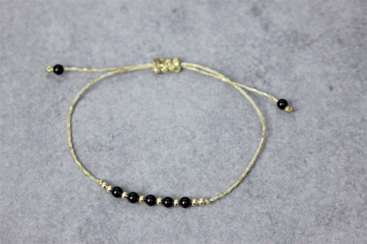 Bracelet ajustable avec fermoir coulissant de type macramé se terminant par 2 perles en onyx noir de 3mm.