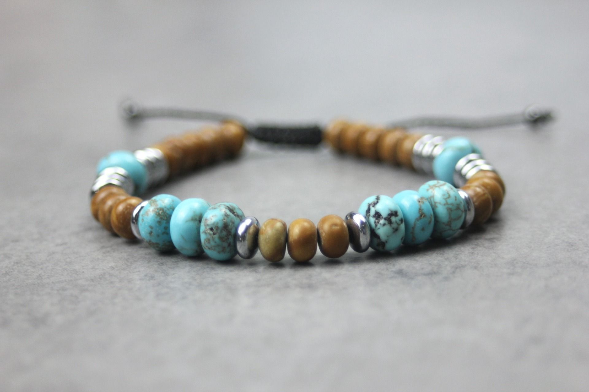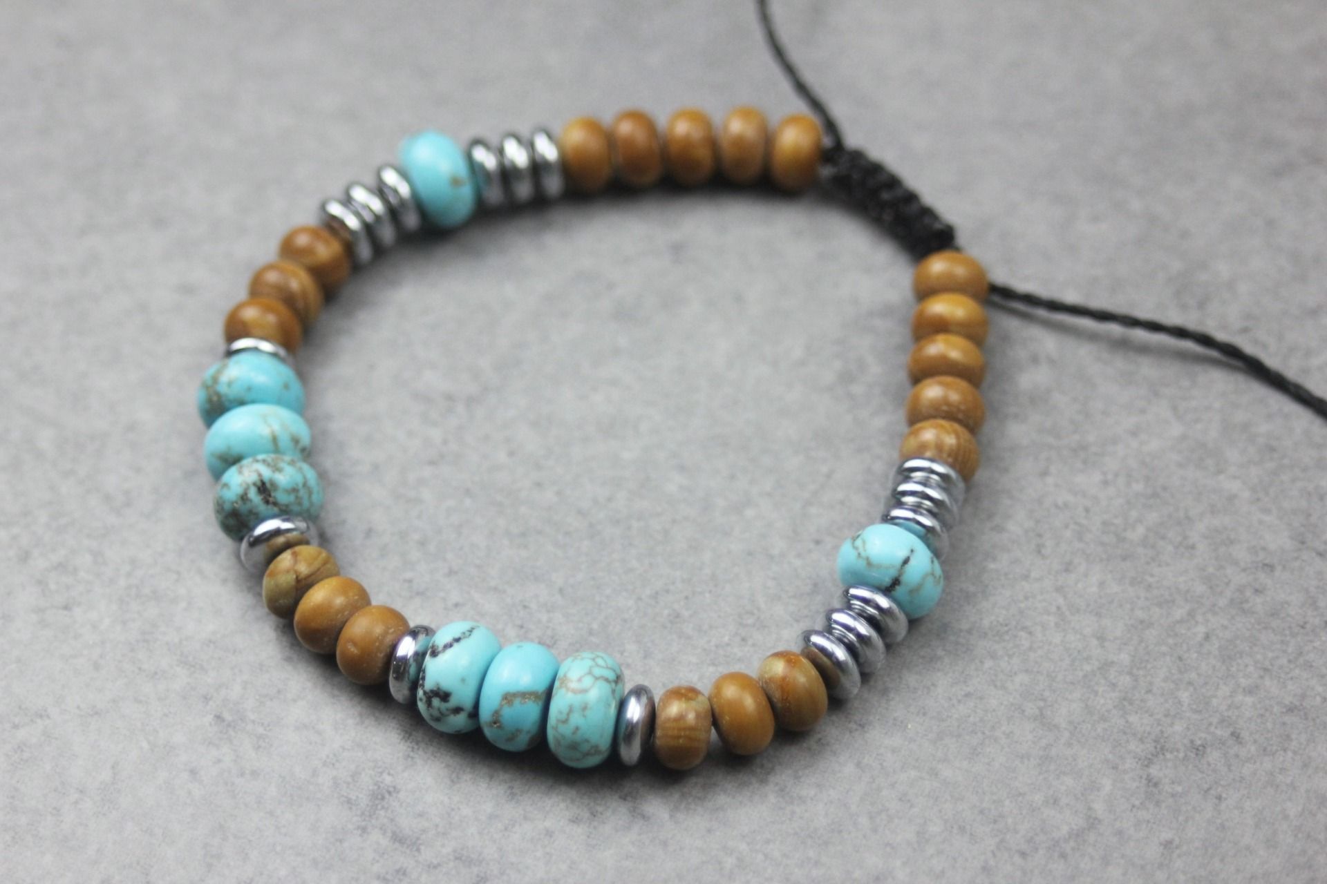Bracelet perles rondelles turquenite, wood stone et hématite - bracelet pierres naturelles - bracelet pierres gemmes - Bracelet homme perles