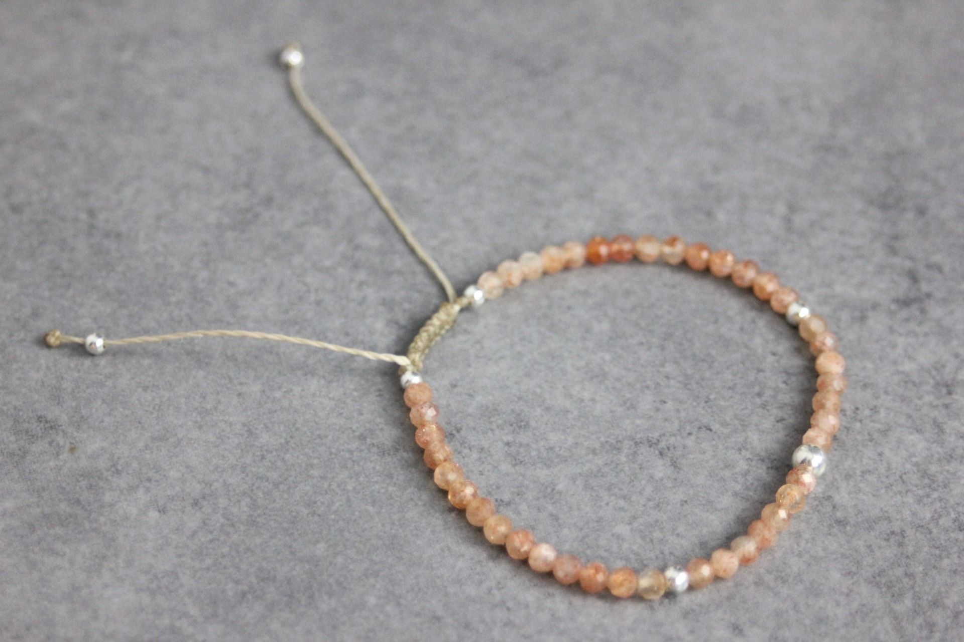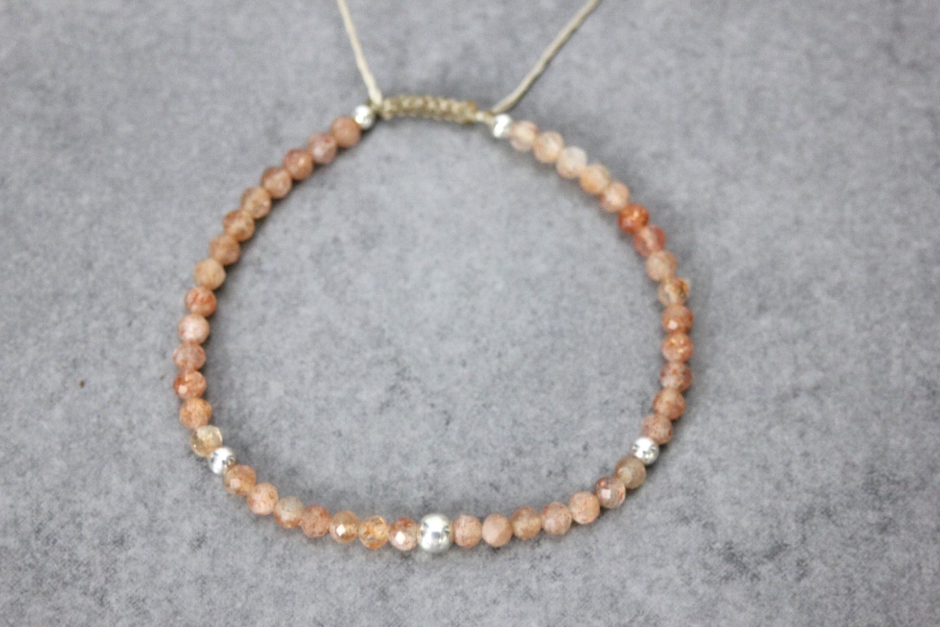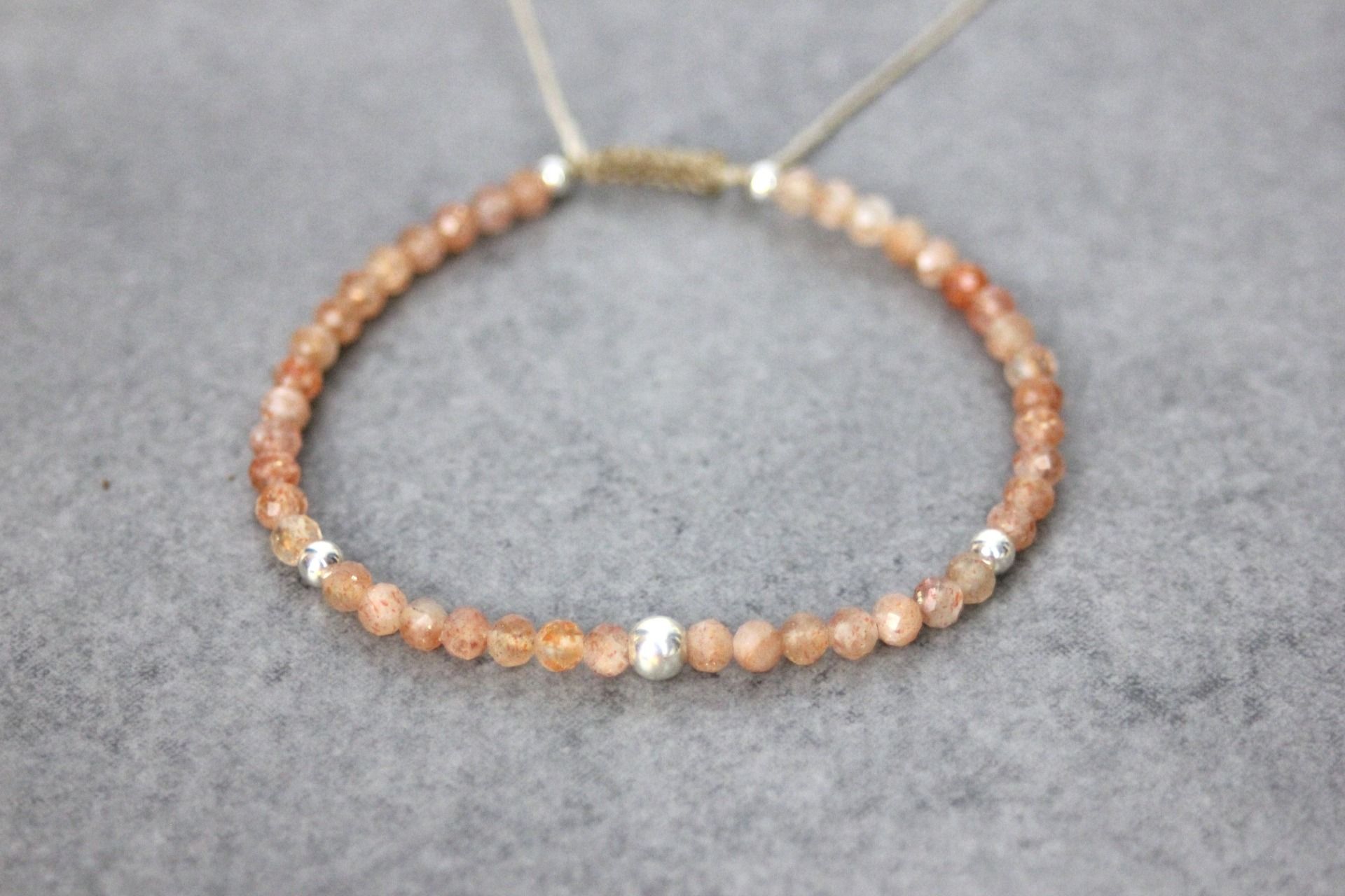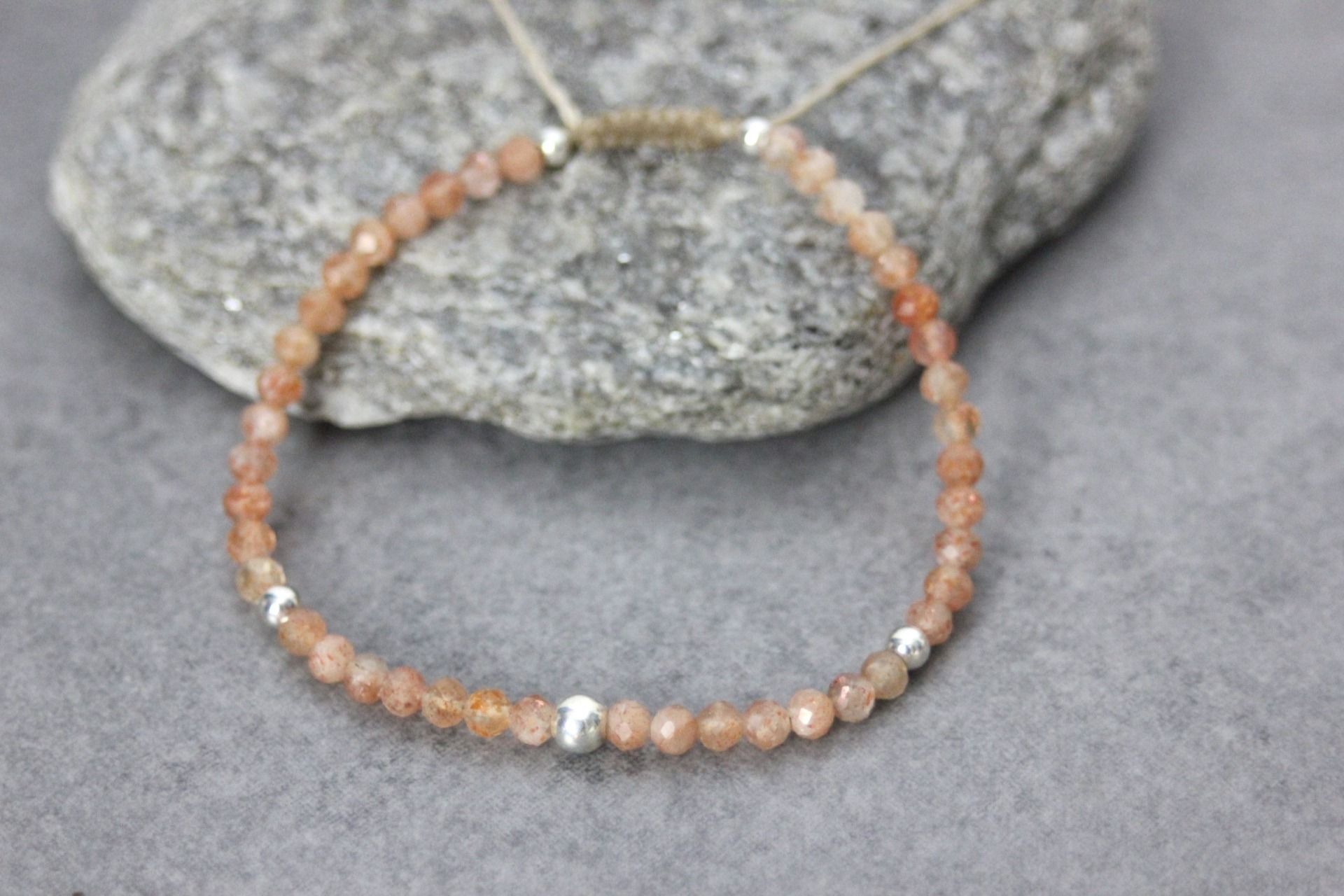 Bracelet en pierres naturelles, pierres de soleil facettées Ø3mm et argent massif 925 - bracelet femme en pierres naturelles - bracelet cordon